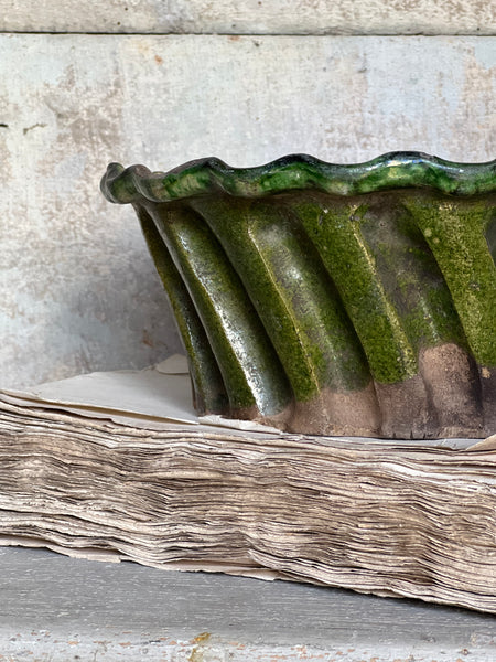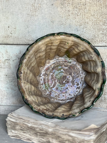 This is a remarkable find, it’s an old mould from Provence, I’ve never found one like this. From the colours it’s from the South East. She has some wear but it’s truly special. A delicate piece that is perfect as a gorgeous decorative piece of Kitchenalia. It’s a 19C piece which has done well to survive!